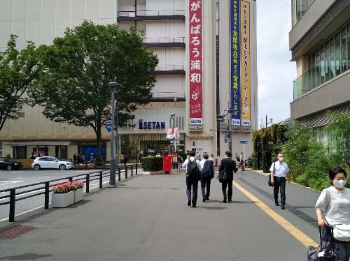 駅を出ていただいた後は右に曲がり、駅を右手に伊勢丹の方面に向かっていきます。
