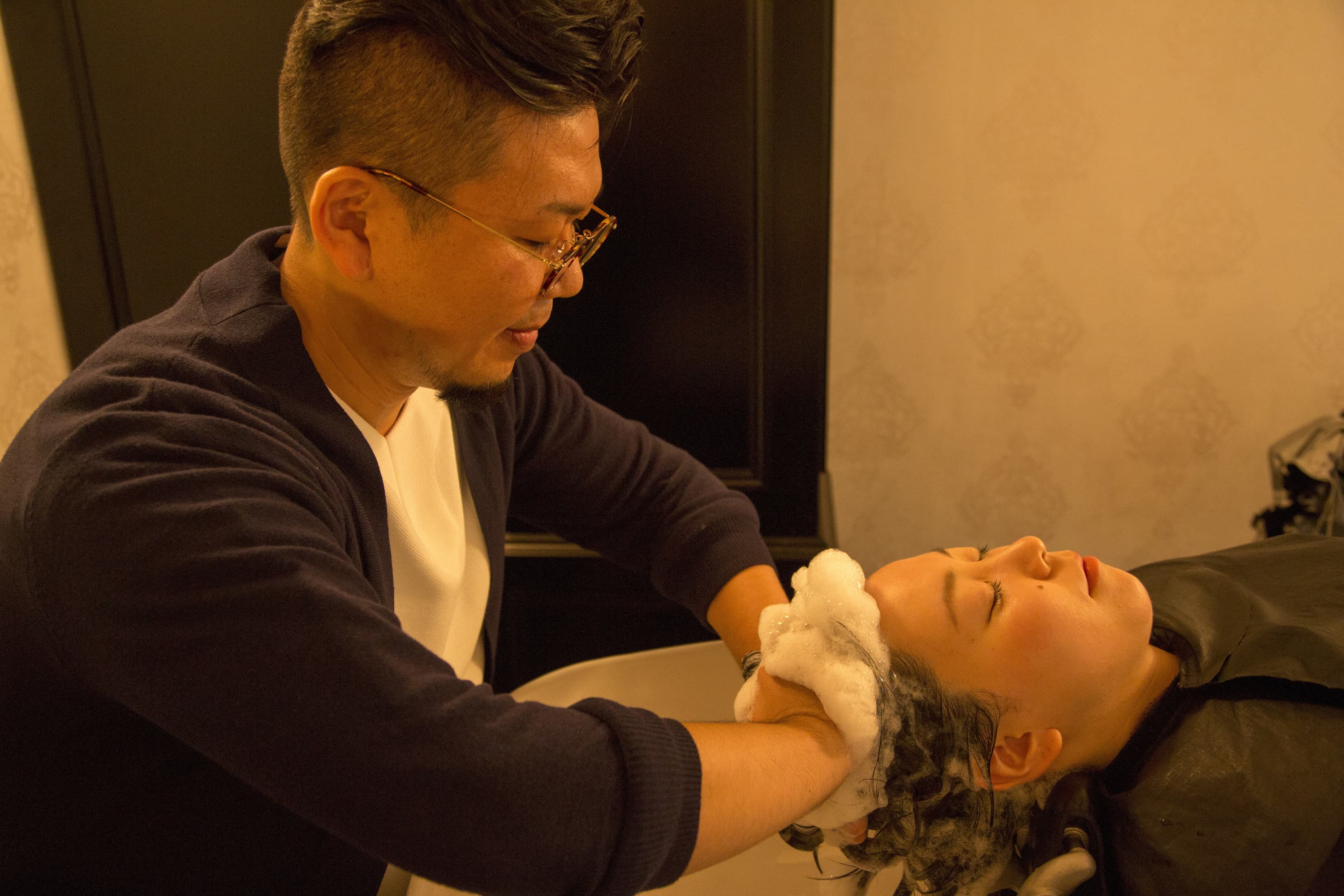 天然由来のクリームを使用し頭皮~首にかけてのマッサージを行います。